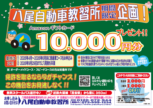 八尾自動車教習所 期間限定企画!