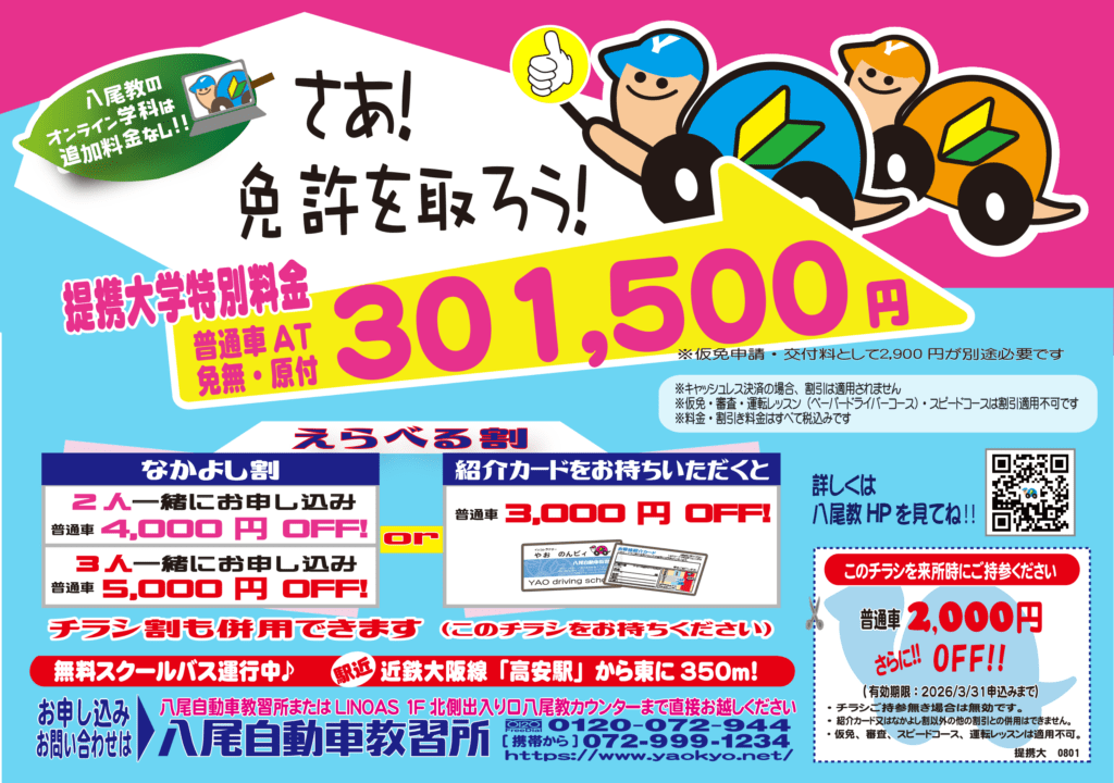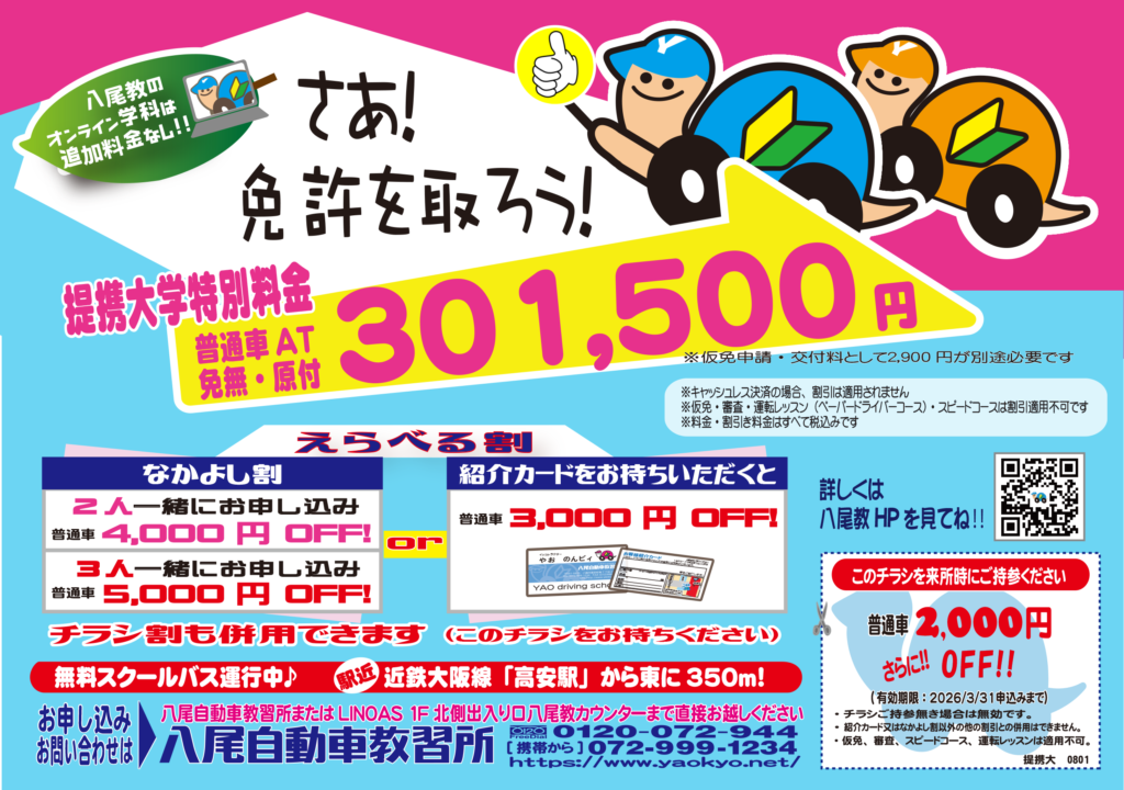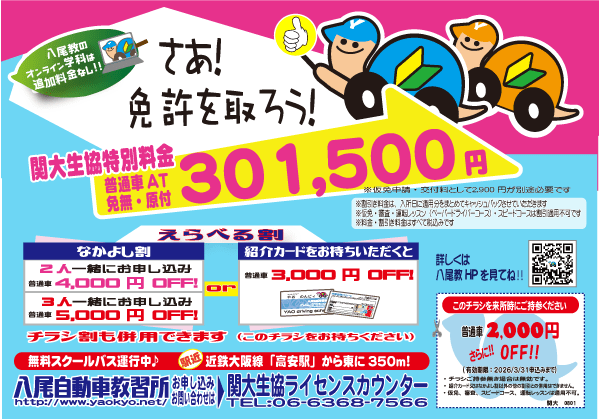 特集・キャンペーン情報|明るい・楽しい・わかりやすい教習所 八尾自動車教習所
